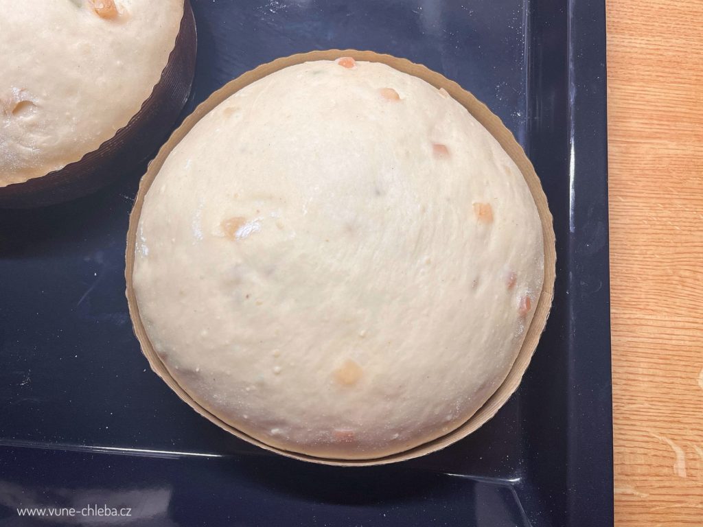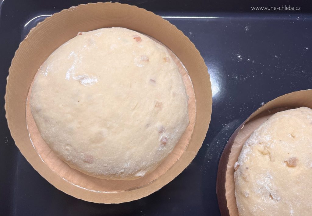 Utvořte 2 bochánky, které umístěte křížem na velký plech vystlaný pečícím papírem. Nebo je můžete vložit do papírových forem jako já. Tady je záruka, že se „nerozlezou“ do stran, zvláště pokud těsto není tak pevné nebo se vám dokonce podařilo to tekutější.